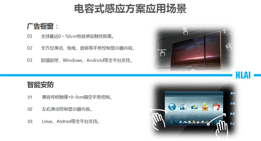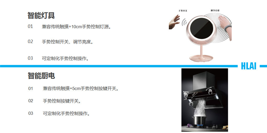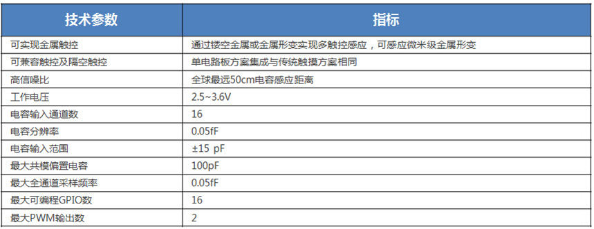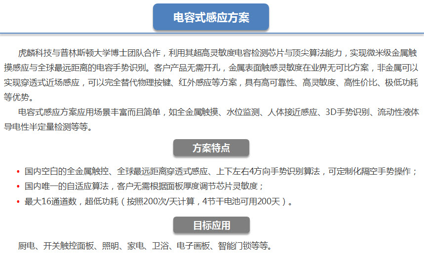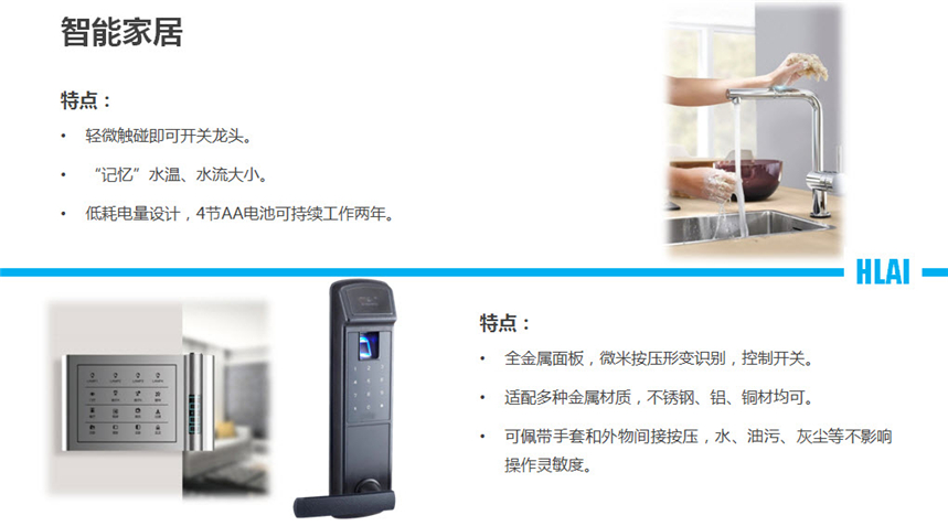 超高灵敏度电容检测芯片与自适应算法,可实现微米级全金属触摸、全球最远距离的非金属手势识别或接近感应。