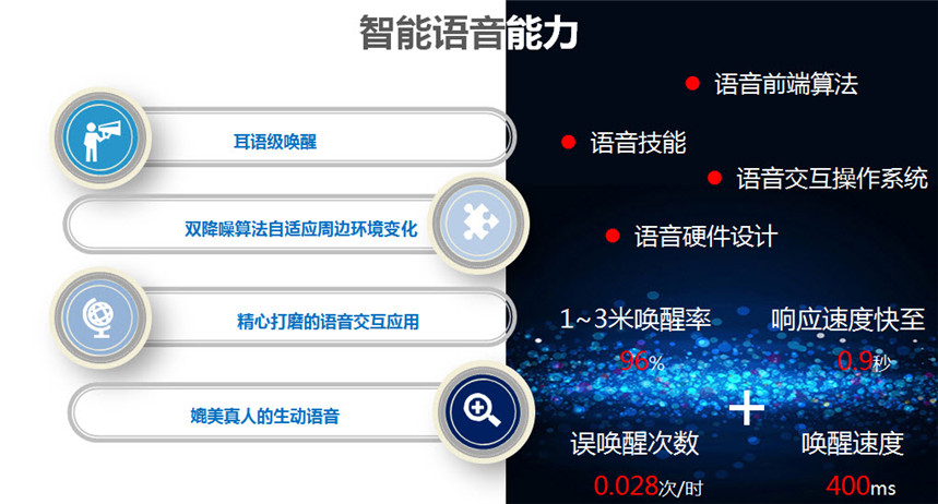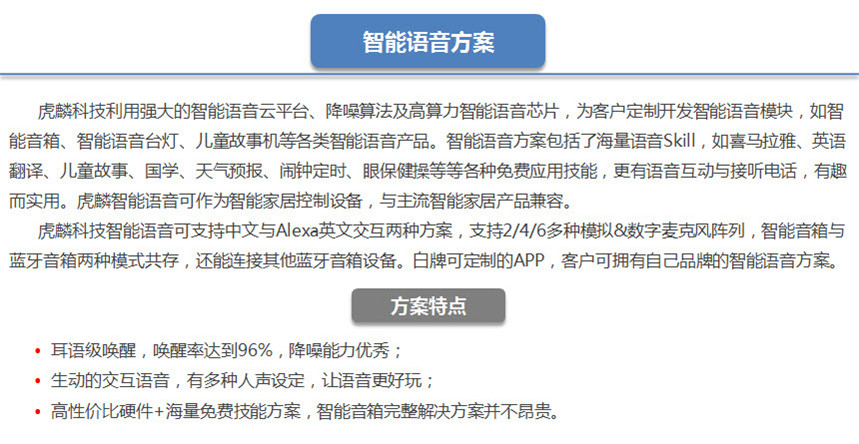 全球领先的智能语音算法与云平台,极其丰富的实用技能,让客户最简单最快速完成蓝牙音箱到智能音箱产品的升级。